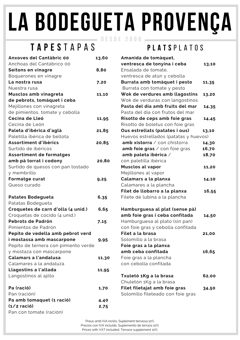 Welcome to La Bodegueta Provenca, a delightful eatery nestled in the heart of L'Eixample, Barcelona. This stylish bistro captures the essence of authentic Spanish cuisine while offering a modern twist that keeps guests returning for more.